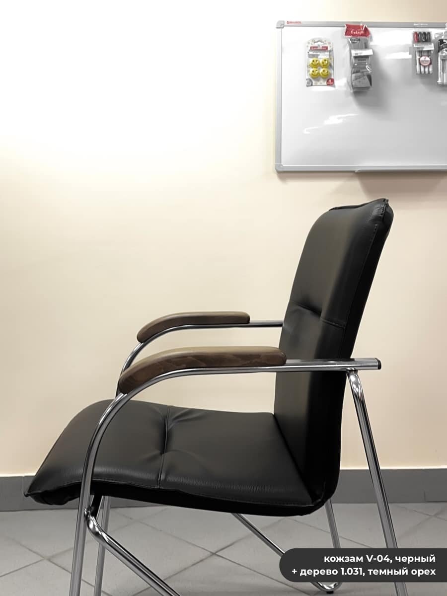 SAMBA (Самба) chrome V-04 / 1.031 Стул офисный для посетителей кожзам черный / дерево темный орех