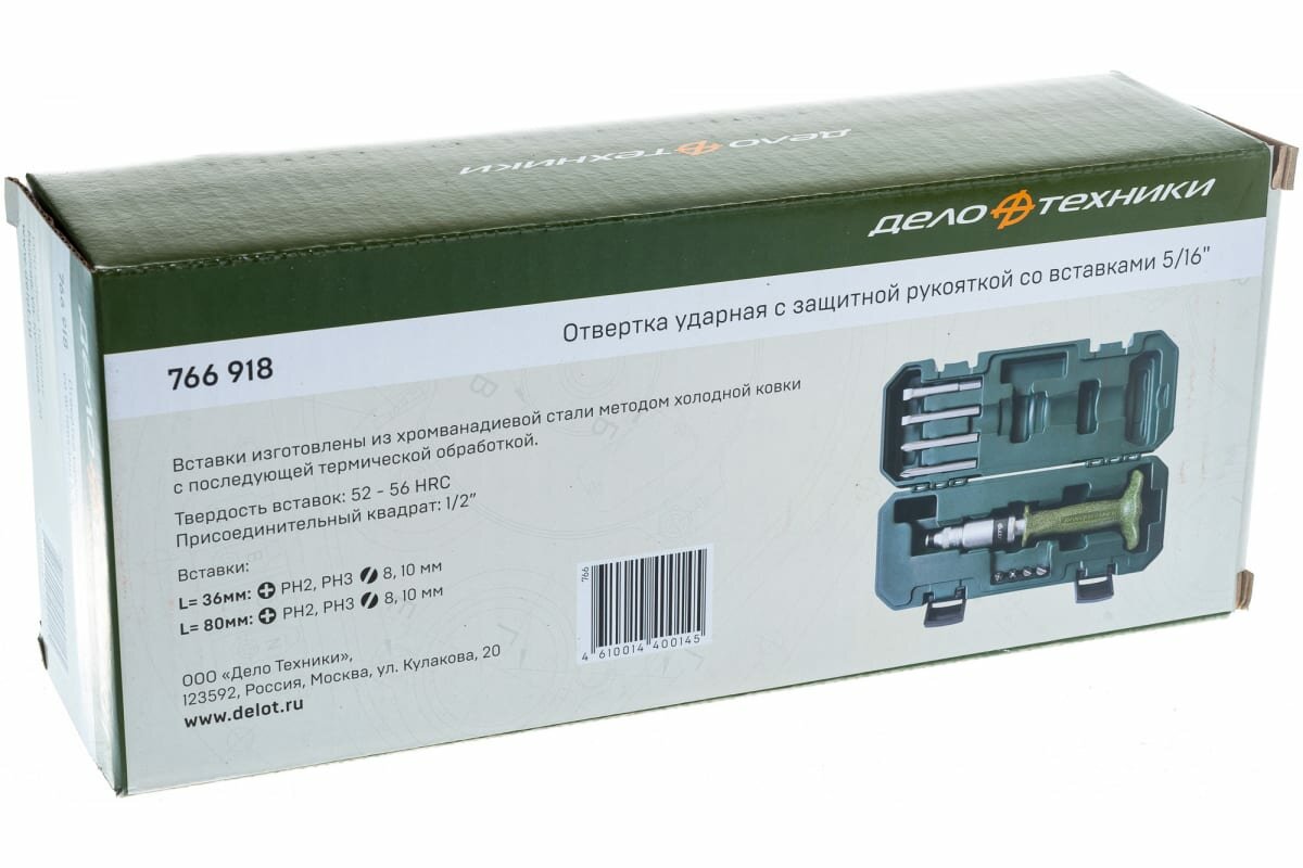 DELOTEKHNIKI 766918 Отвёртка ударная с защитной рукояткой и со вставками 5/16" (SL8,10;РH2,3 длиной 36 и 80 мм)