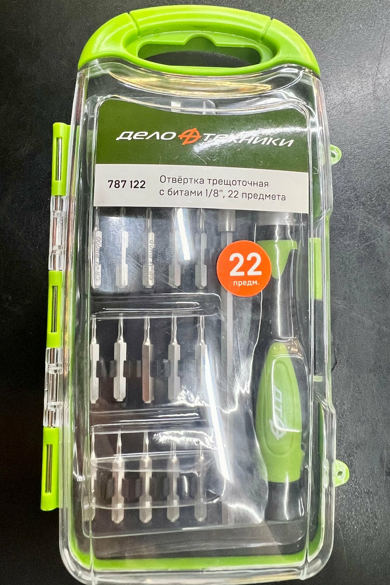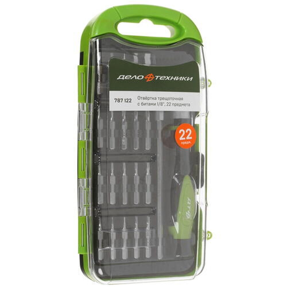 Отвёртка трещоточная для точных работ с битами 1/8'', 22предмета 787122 Дело Техники