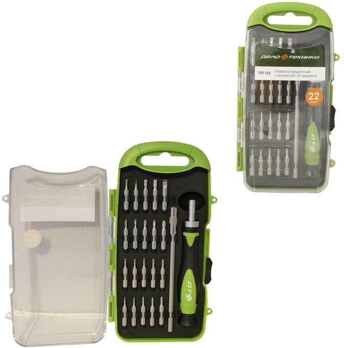 DELOTEKHNIKI 787122 787122 Отвёртка трещоточная для точных работ с битами 1/8'' 22 предметов