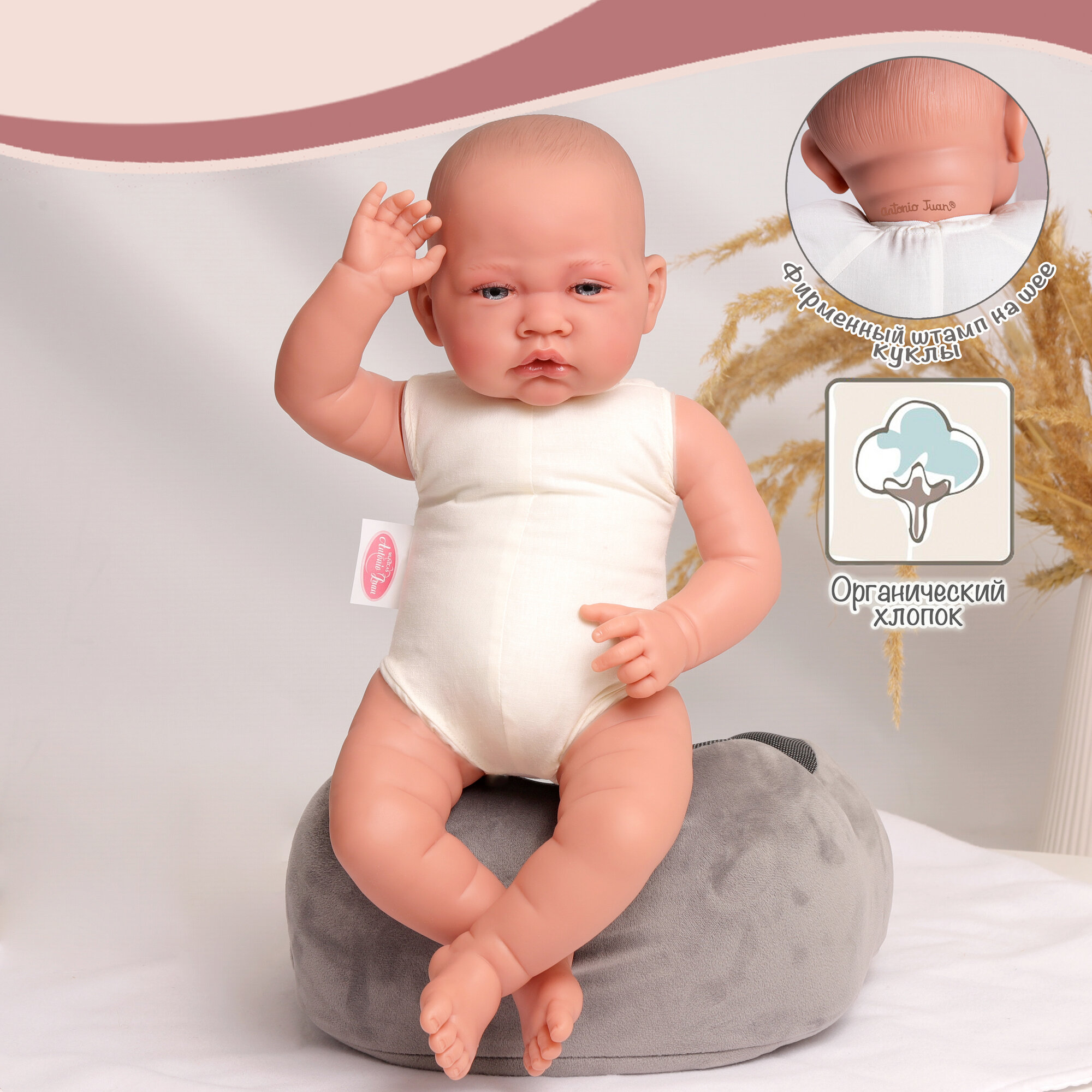 Кукла младенец испанская ANTONIO JUAN Пипо в сером, 42 см, мягконабивная 33235
