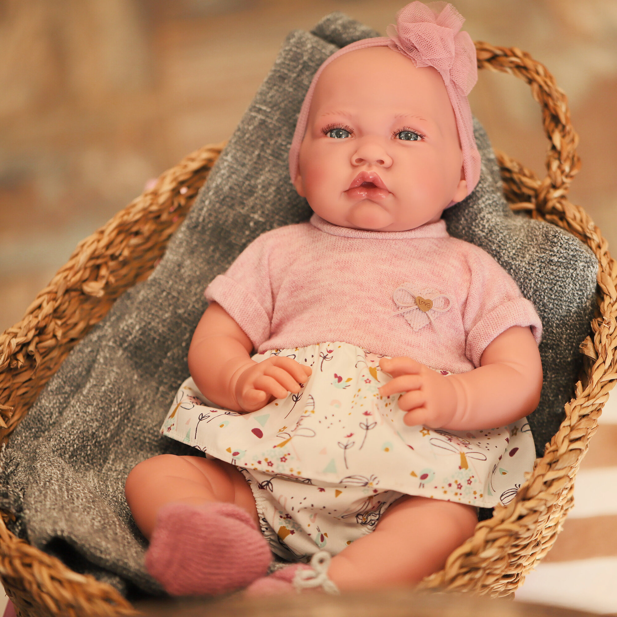 Пупс "Recién Nacida con cojín y chaqueta" (Малышка в серой куртке с подушкой)