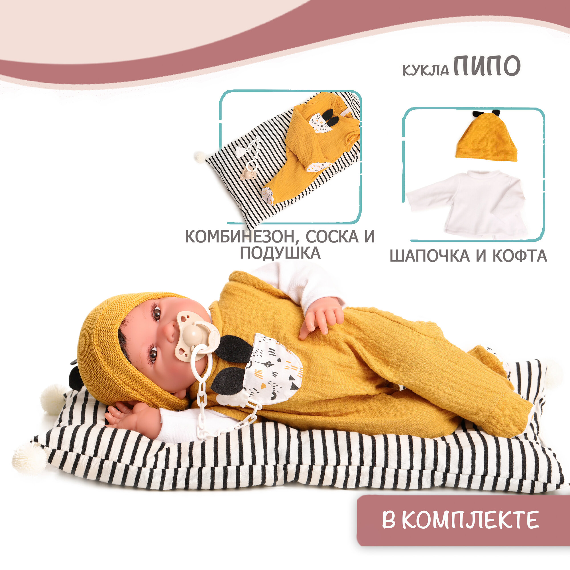 | Комплектация | - кукла в одежде; - соска. |