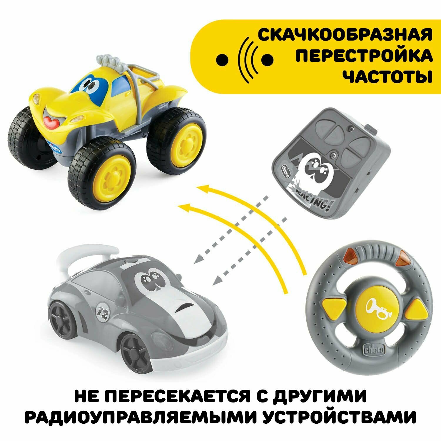 Купить Игрушка машинка на радиоуправлении Chicco Билли большие колёса для детей от 2 до 6 лет жёлтая, подарок ребенку