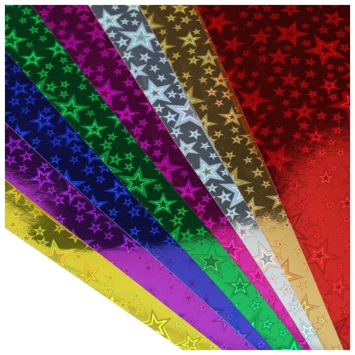 Купить Цветная бумага А4 голографическая, 8 листов 8 цветов, 80 г/м2, "звезды", BRAUBERG, 124719