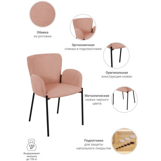 Стул мягкий с подлокотниками Joy пудровый / Стулья для кухни / Стулья кухонные со спинкой / Мебель / Стул мягкий / Стул кресло / Стул обеденный