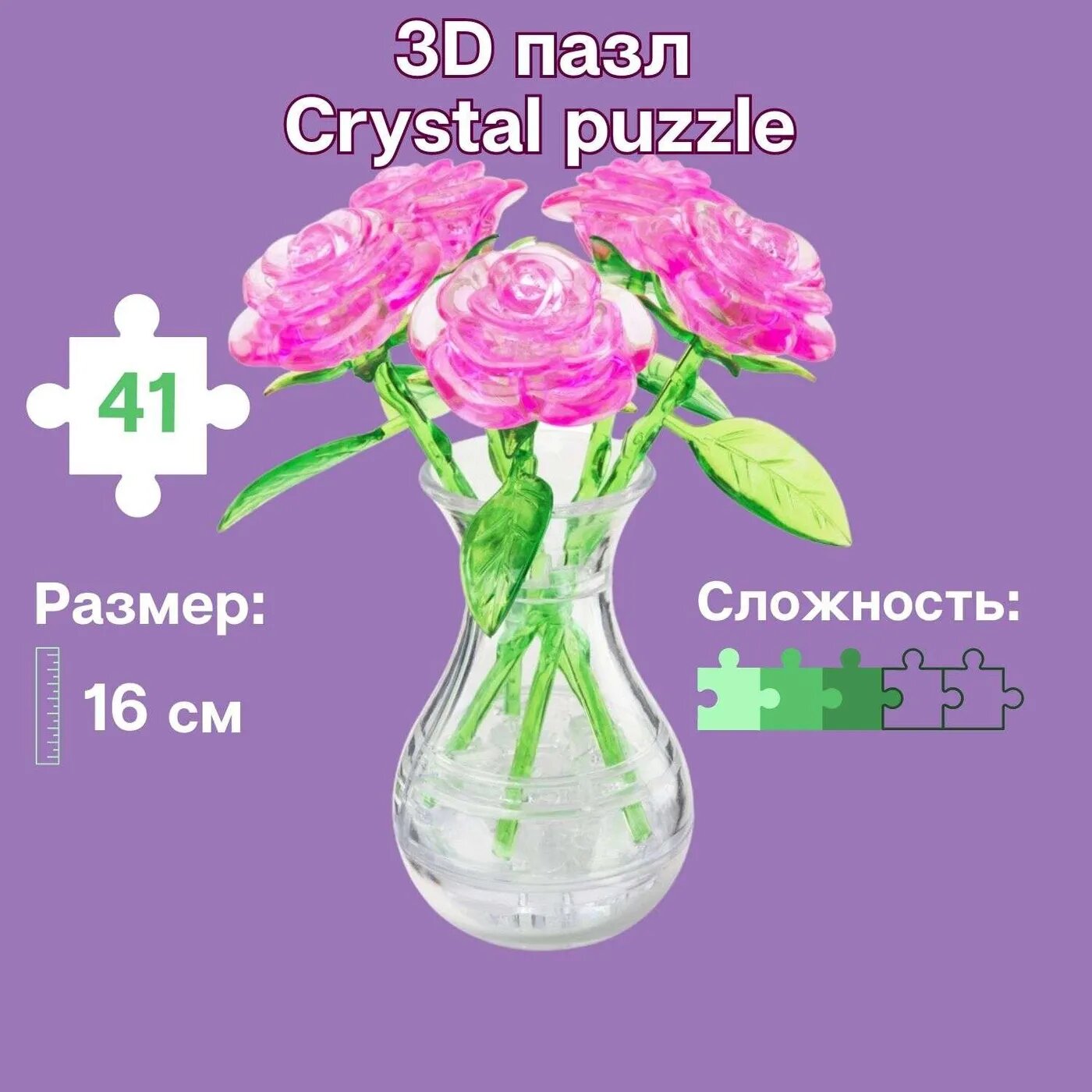 Купить 3D-пазл Crystal Puzzle Букет в вазе розовый (90252), 41 дет., 5 см, розовый
