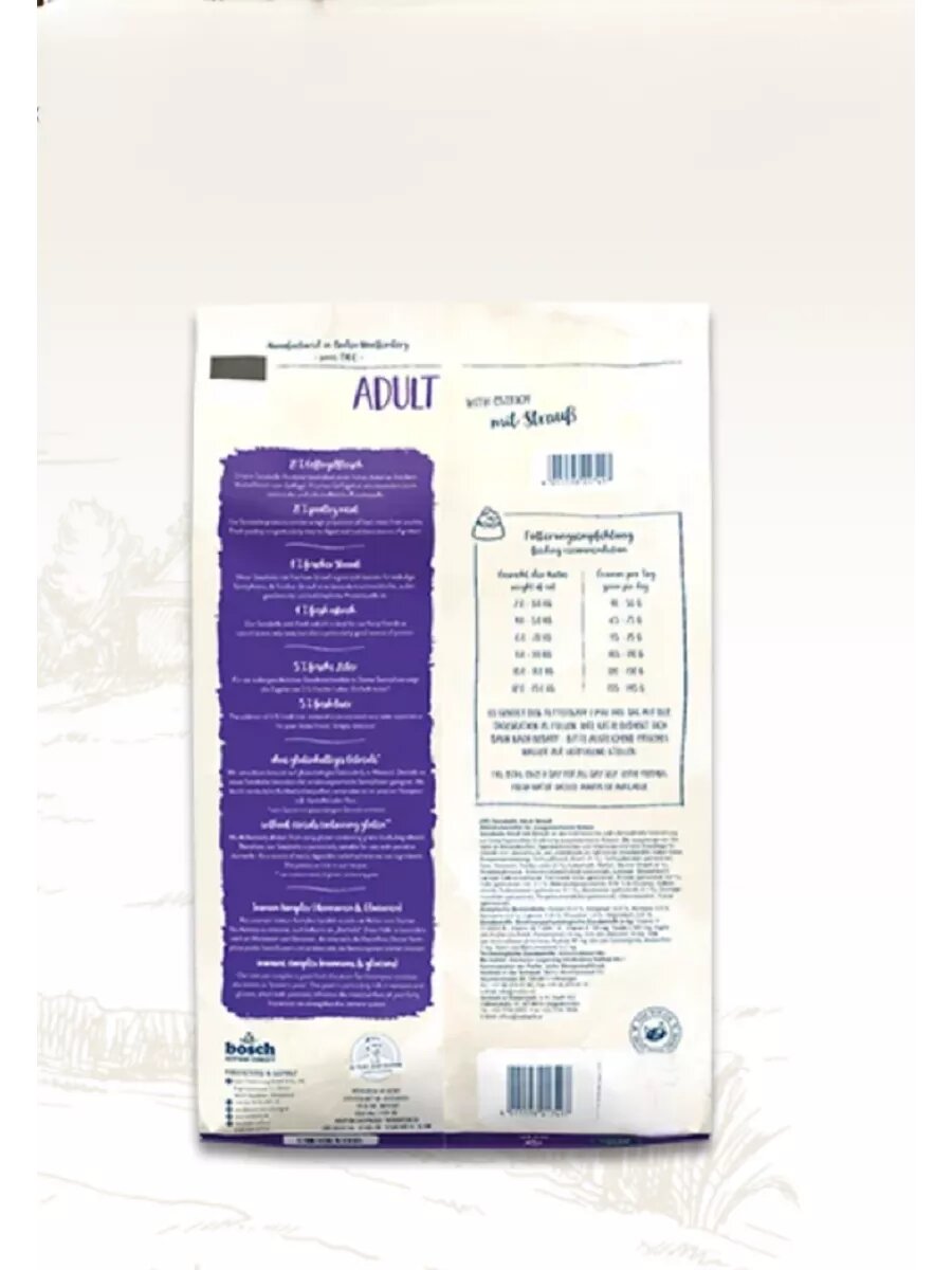 | Состав | свежее мясо домашней птицы (мин. 20 %), рис, просо жёлтое, мука из мяса домашней птицы, животный жир, подкожная клетчатка (дегидратированная), печень (дегидратированная), мука из мяса страуса (мин. 4 %), сорго, гидролизованный белок, мясная мука, яичный порошок, пульпа свёклы (без сахара), картофельный белок, льняное семя, целлюлоза, рыбий жир, дрожжи (дегидратированные), хлорид калия, клюква (дегидратированная), черника (дегидратированная), мука из мидий, порошок цикория, цветки бархатцев (дегидратированные), экстракт юкки (дегидратированный) |