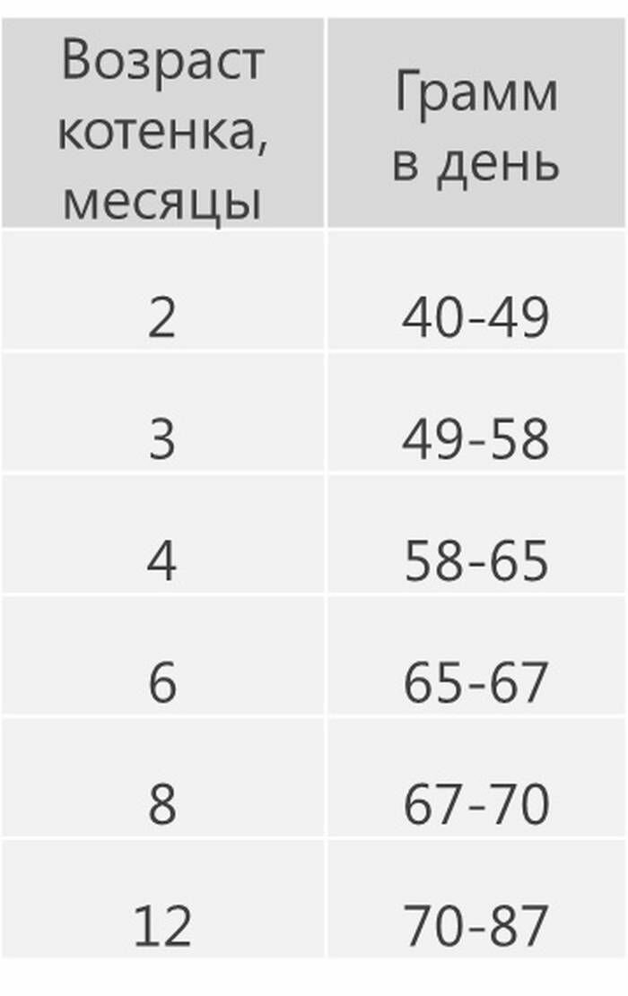 | Дополнительная информация | нормы кормления указаны в таблице, у животного всегда должна быть свежая вода |