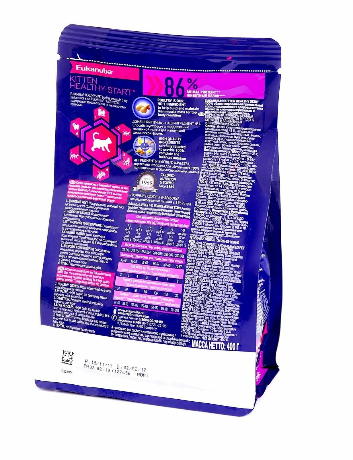 Eukanuba Kitten Healthy Start полнорационный сухой корм для котят, беременных и кормящих кошек, с курицей - 400 г