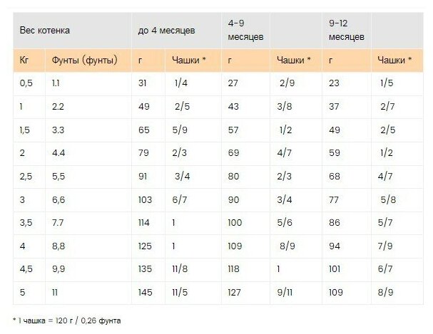 | Возраст животного | взрослые (1-6 лет) / котята (до 1 года) |