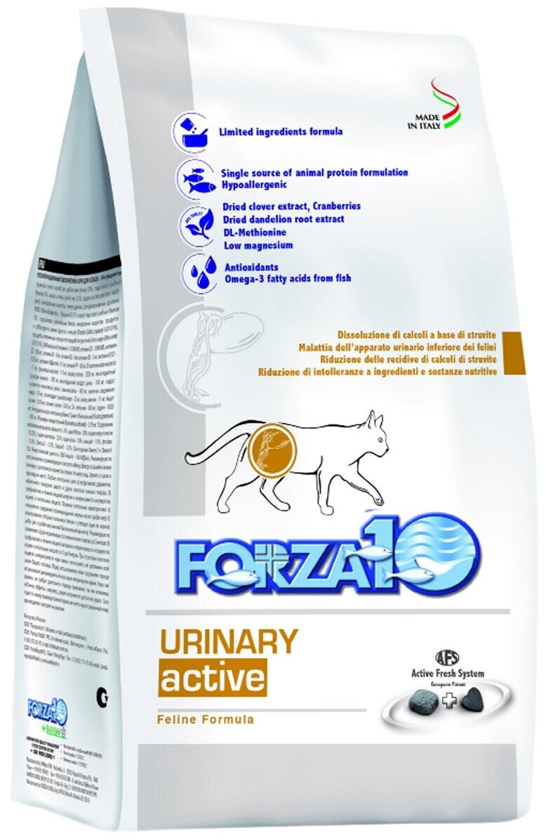 Сухой корм Forza10 Cat Urinary Active, для взрослых кошек при мочекаменной болезни