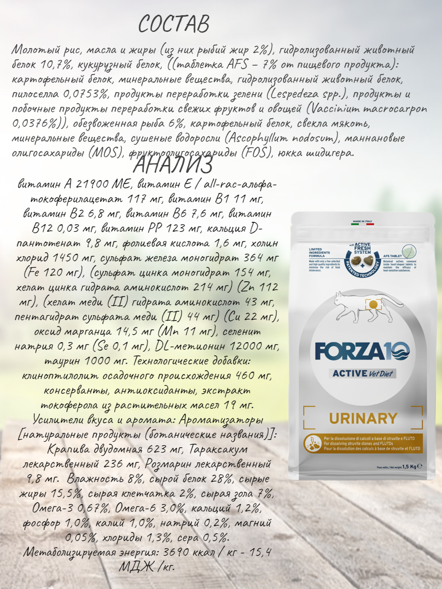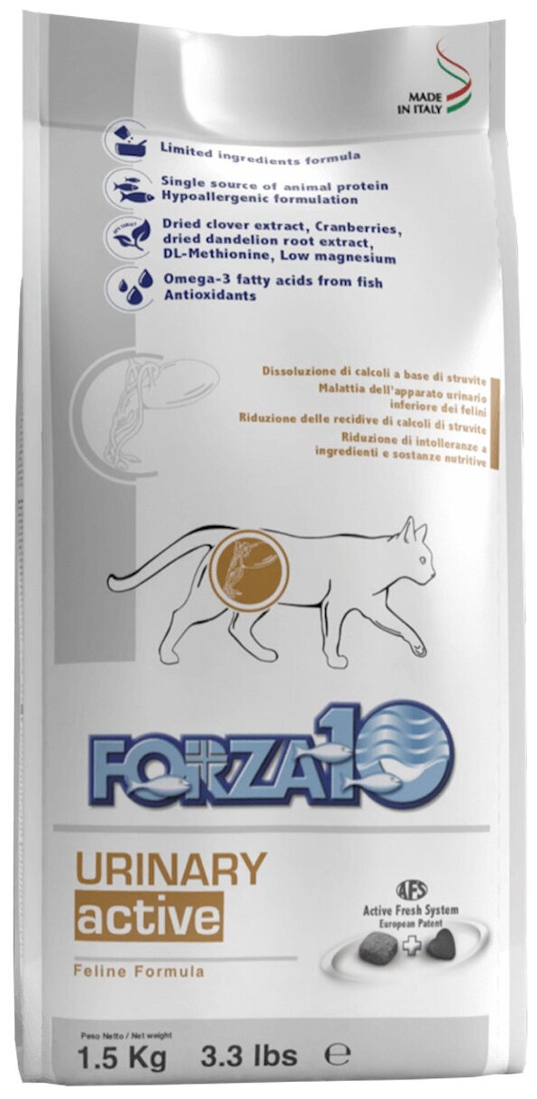 FORZA10 CAT URINARY ACTIVE для взрослых кошек при мочекаменной болезни (1,5 кг)