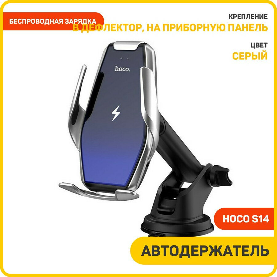 Автомобильный держатель/беспроводное зарядное устройство Hoco S14 (в дефлектор / на приборную панель) серый