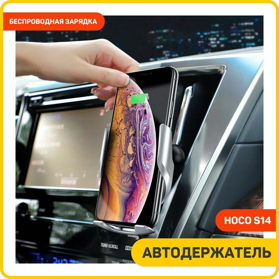 Держатель для телефона Hoco S14 с беспроводной зарядкой 15 Вт