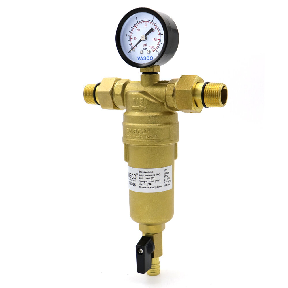 Фильтр самопромывной с манометром, для горячей воды 1/2" VASCO арт.8805 интересное: