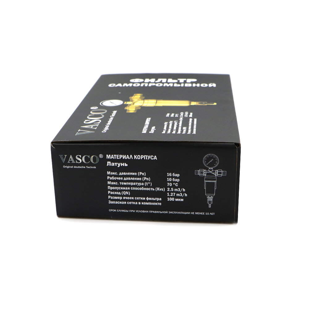 Купить Фильтр самопромывной с манометром, для горячей воды 1/2" VASCO арт.8805
