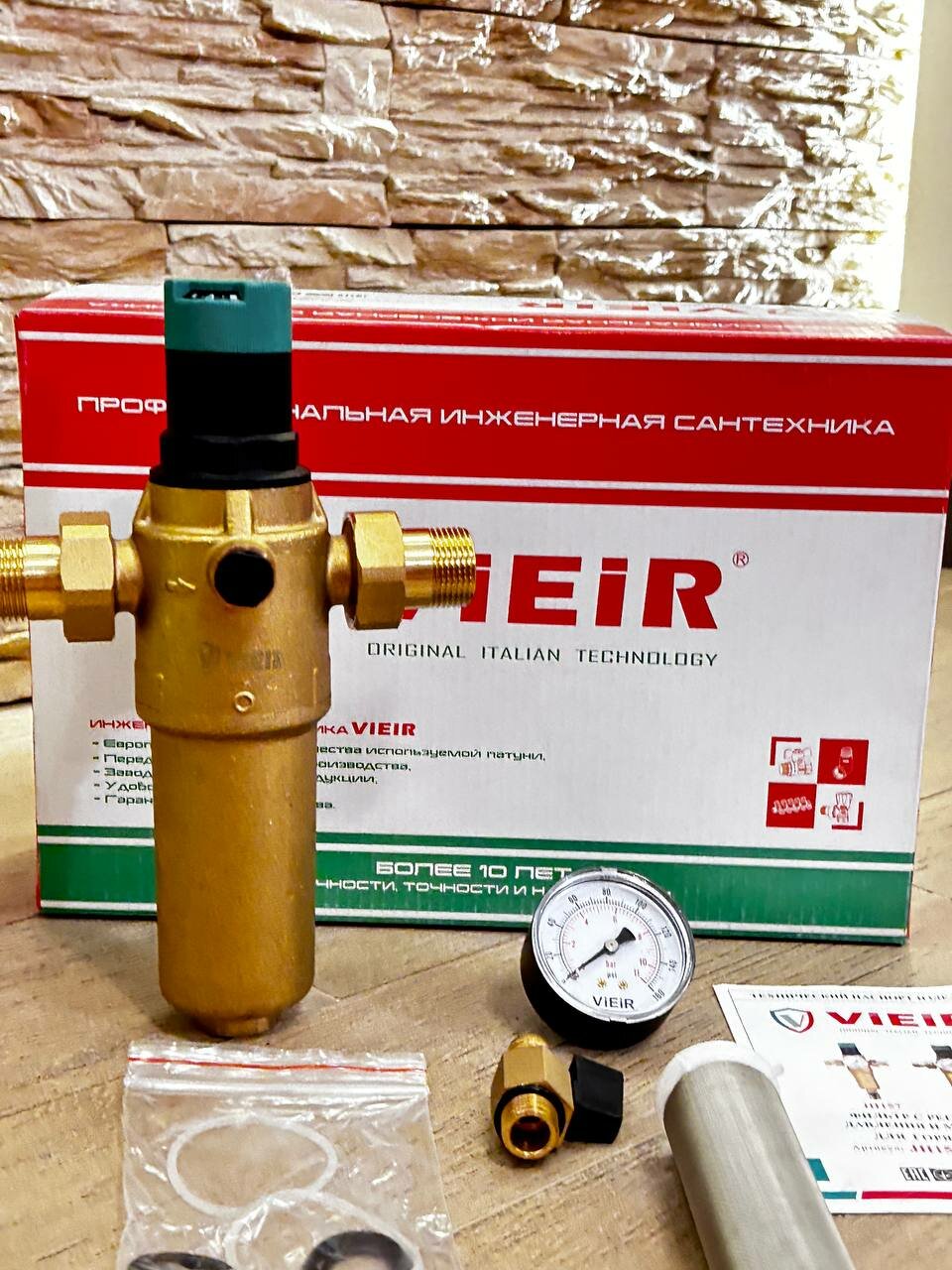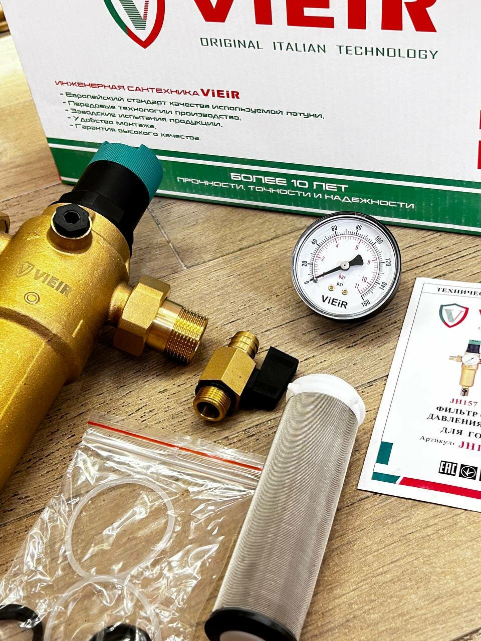 Самопромывной фильтр с регулятором давления и манометром 3/4" для горячей воды ViEiR