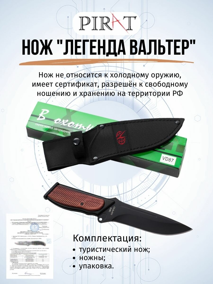 Купить Охотничий нож Pirat VD87 "Легенда Вальтер", длина клинка: 160 мм