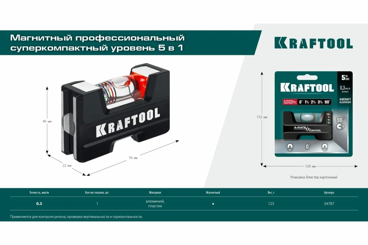 СохранитьУровень магнитный компактный KRAFTOOL A-RATE CONTROL, 5 в 1 интересное:
