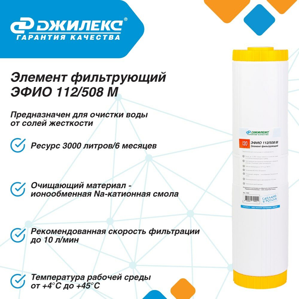 Элемент фильтрующий эфио 112/508М умягчение (20 BB) | код 1343 | Джилекс ( 1шт )