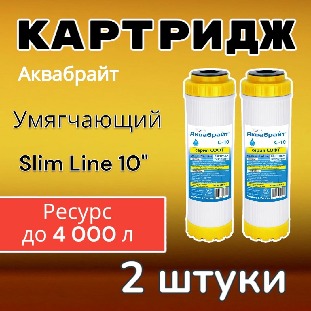 Купить Картридж для умягчения воды C-10 Аквабрайт (2 шт), Карбон блок умягчающий (ионообменный) с возможностью регенерации