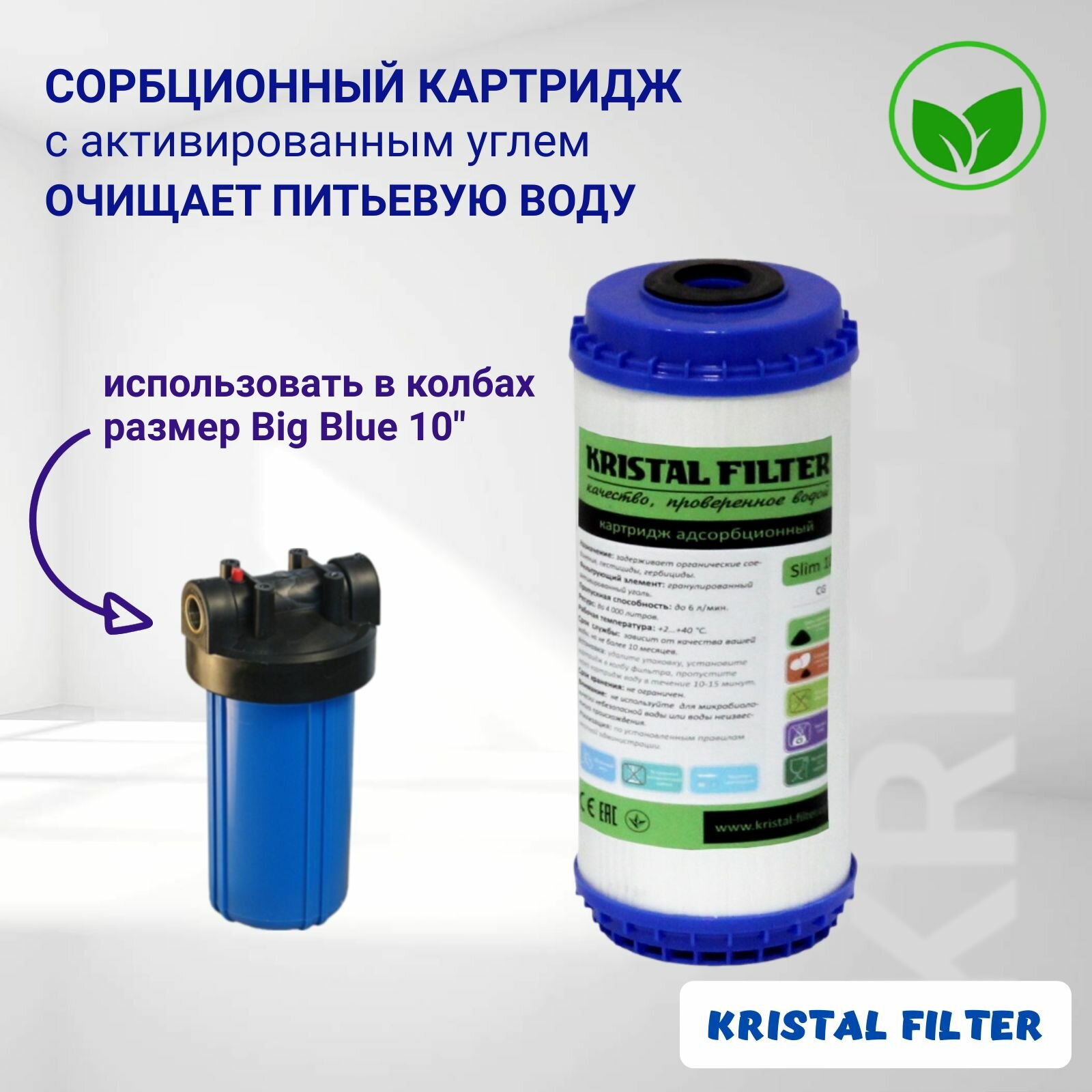 Картридж для фильтра воды, угольный, Big Blue 10, KRISTAL FILTER. Для магистрального фильтра. CG интересное: