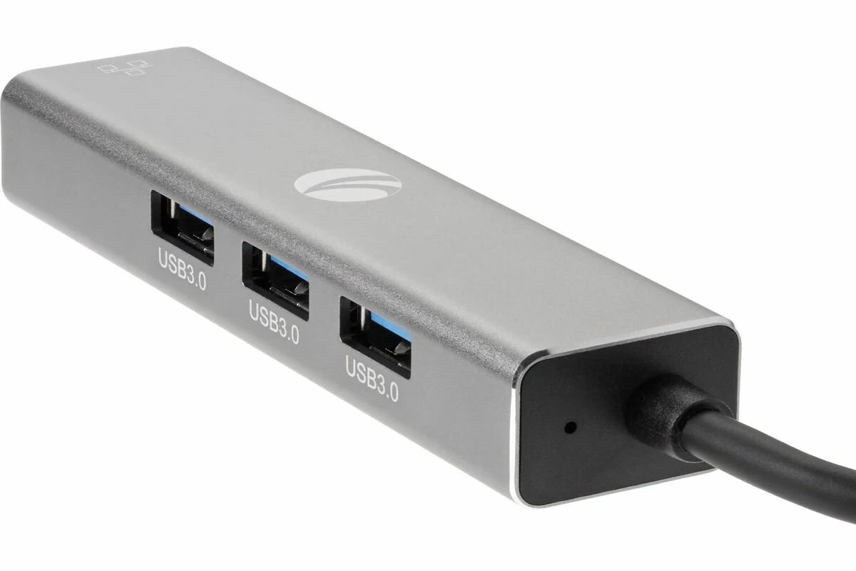VCOM DH312A Переходник USB 3.0 -->RJ-45 1000Mbps+3 USB3.0, Aluminum Shell, 0.2м VCOM