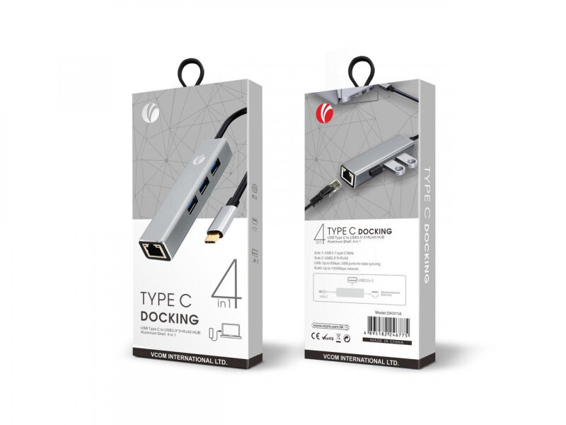 Vcom DH311A Кабель-концентратор USB 3.1 Type-Cm --> RJ-45+3port USB3.0 f Aluminum Shell DH311A 4895182246775