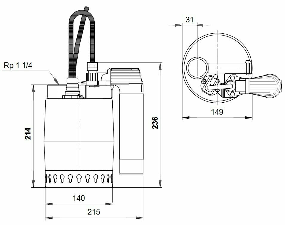 Дренажный насос UNILIFT KP-250 AV1 5м кабель, нержавеющая сталь, поплавковый выключатель