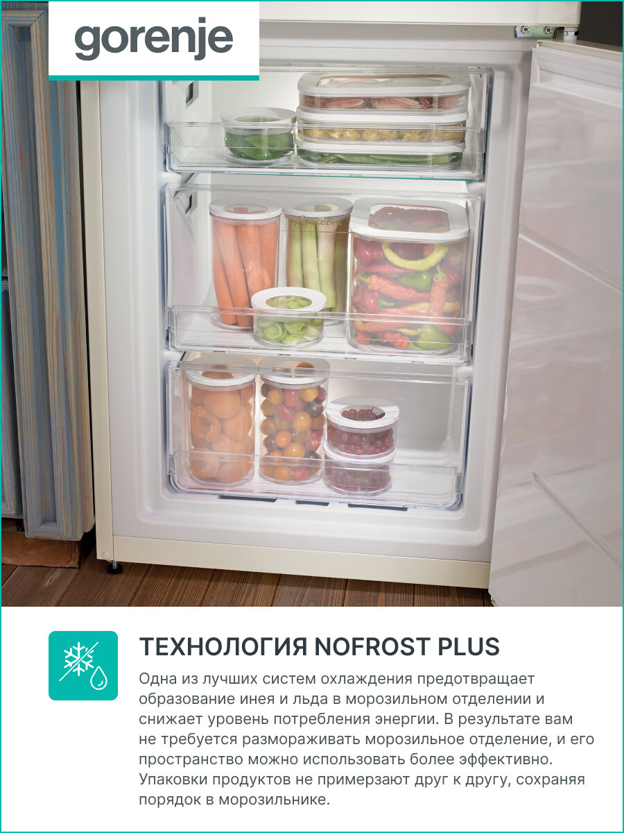 СохранитьХолодильник Gorenje NRK 6202CLI цвет слоновая кость, зона свежести, No Frost, Режим Эко, звуковая и световая индикация интересное: