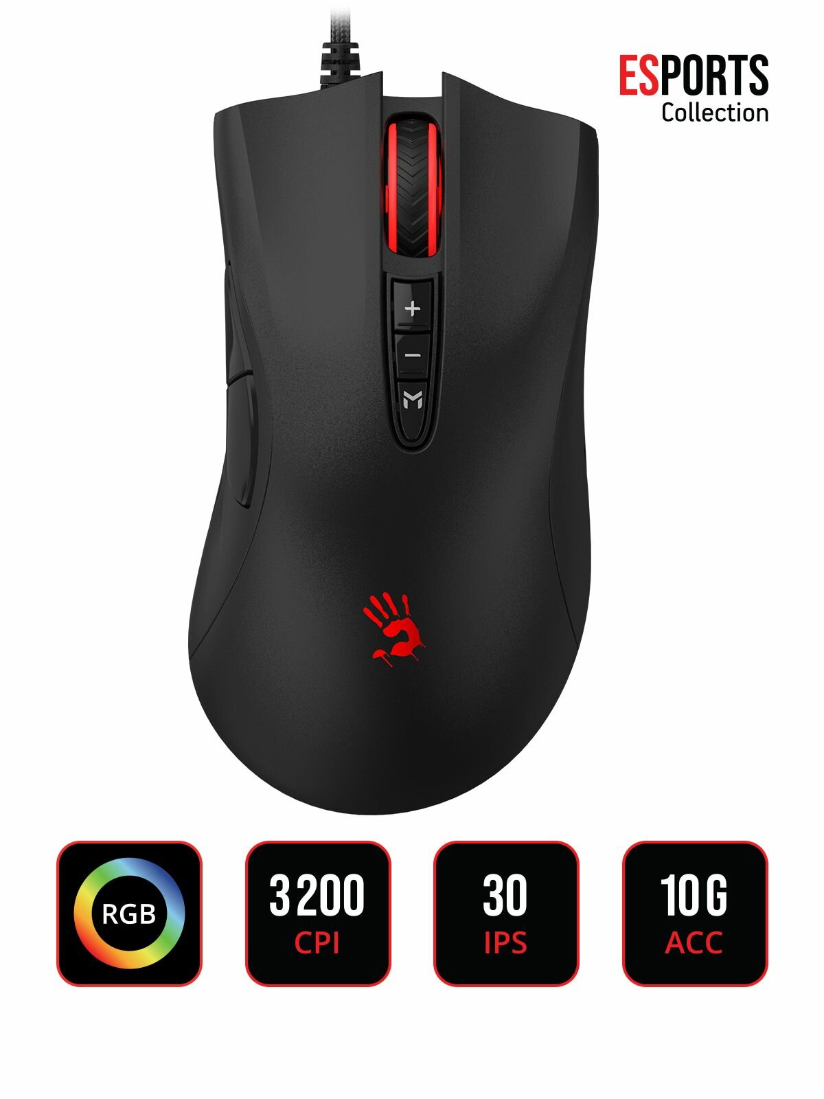 Мышь A4Tech Bloody ES5 черный, оптическая, разрешение сенсора 3200dpi, проводная, длина провода 1.8м, кнопок: 7, подходит для правой руки
