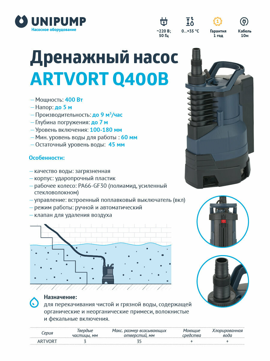 Насос дренажный UNIPUMP ARTVORT Q400B интересное: