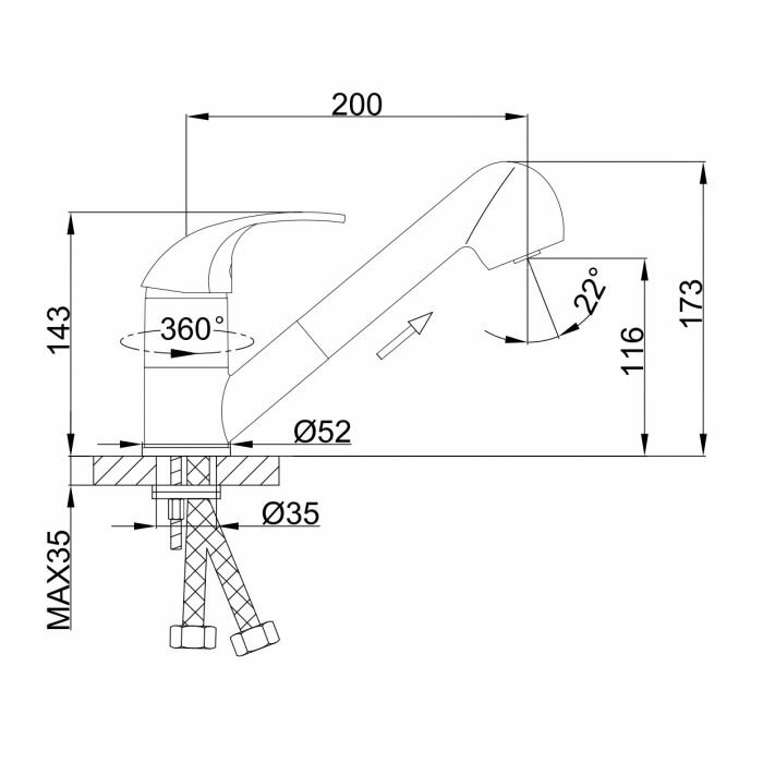 | Длина излива | 200 мм |