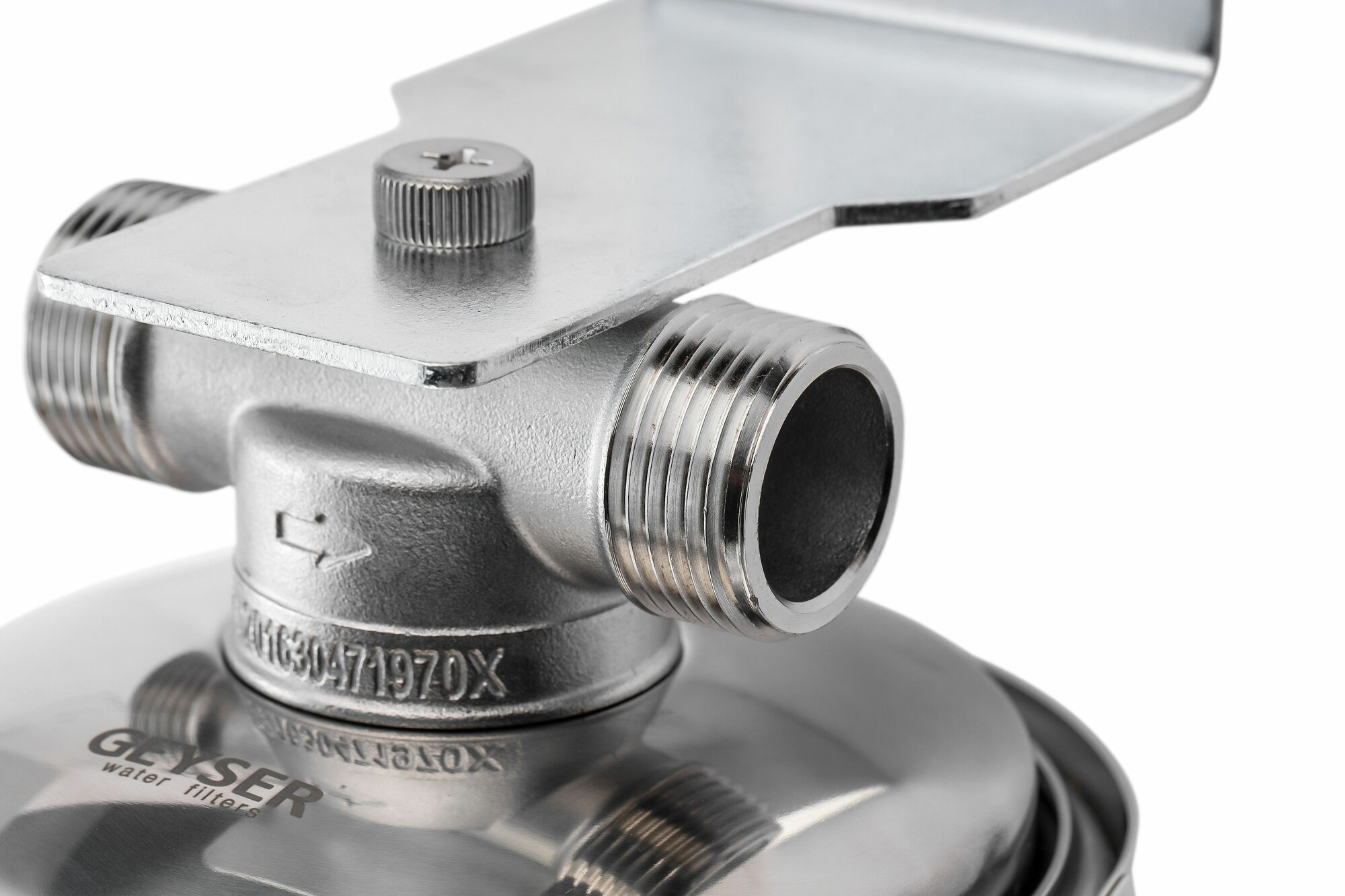 Корпус фильтра Гейзер Премьер для холодной и горячей воды нержавеющая сталь 10BB 1 НР(ш) х 1 НР(ш) серебро