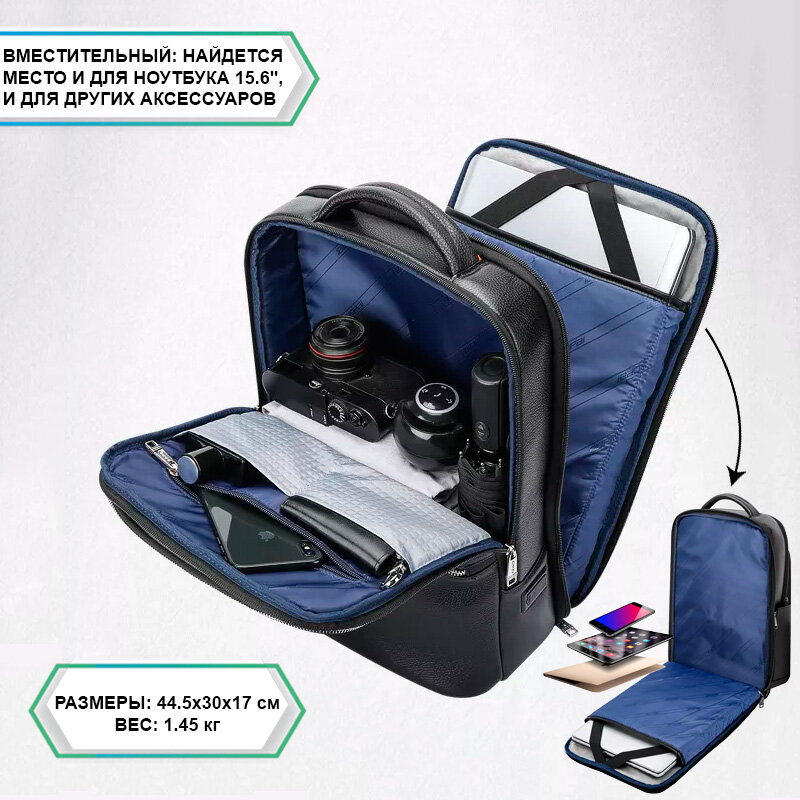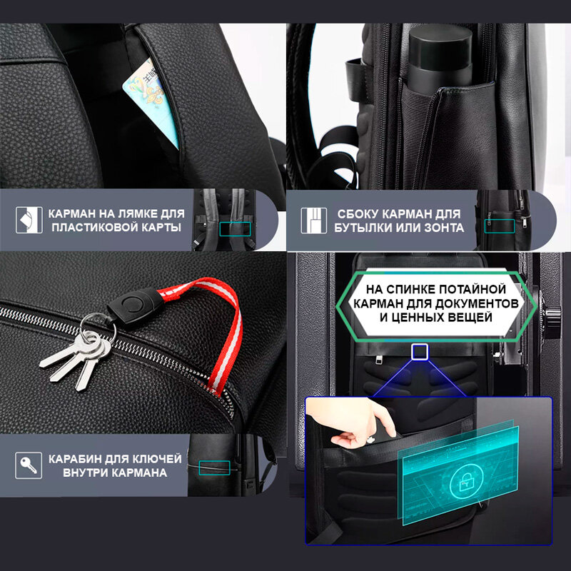 СохранитьРюкзак из натуральной кожи городской дорожный Bopai универсальный 22л, для ноутбука 15.6", влагостойкий, с USB портом, молодежный черный интересное:
