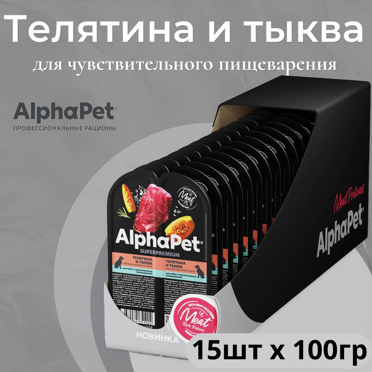 Купить Влажный корм для собак с чувств. пищеварением AlphaPet Superpremium Телятина и тыква мясные кусочки в соусе 100г (в упаковке 15 блистеров)