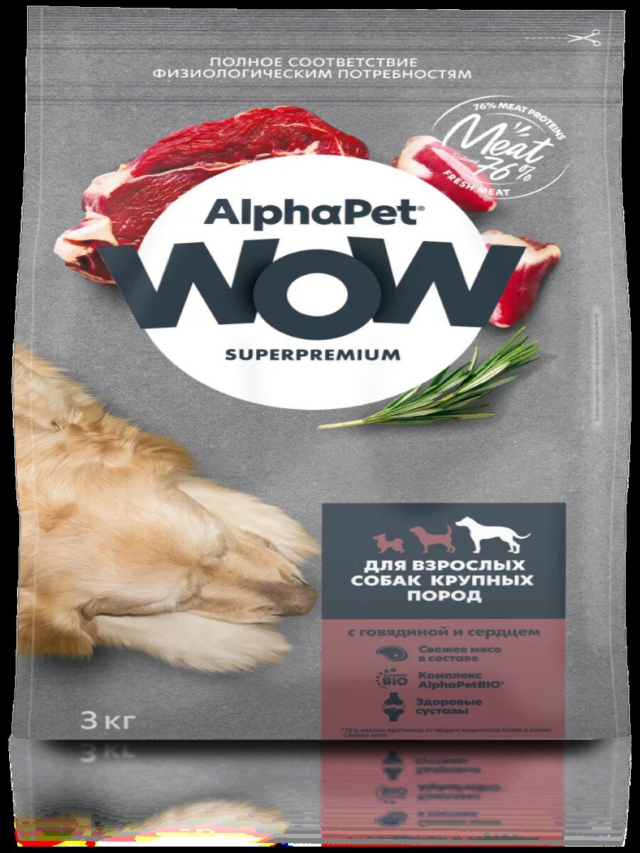 Купить Сухой корм AlphaPet WOW для взрослых собак крупных пород с говядиной и сердцем 3 кг