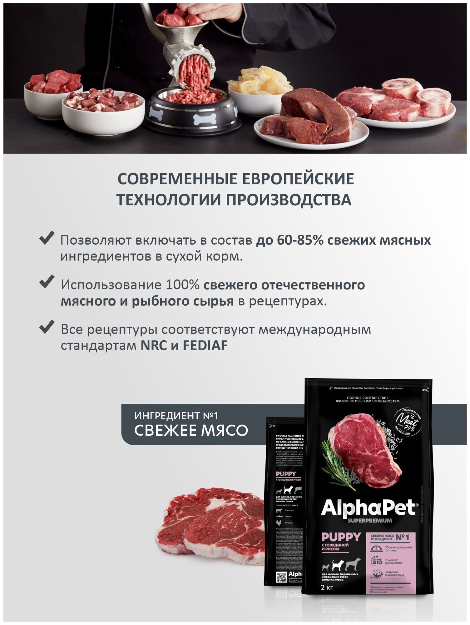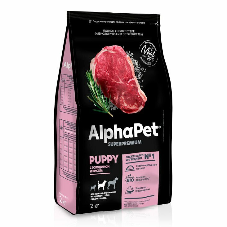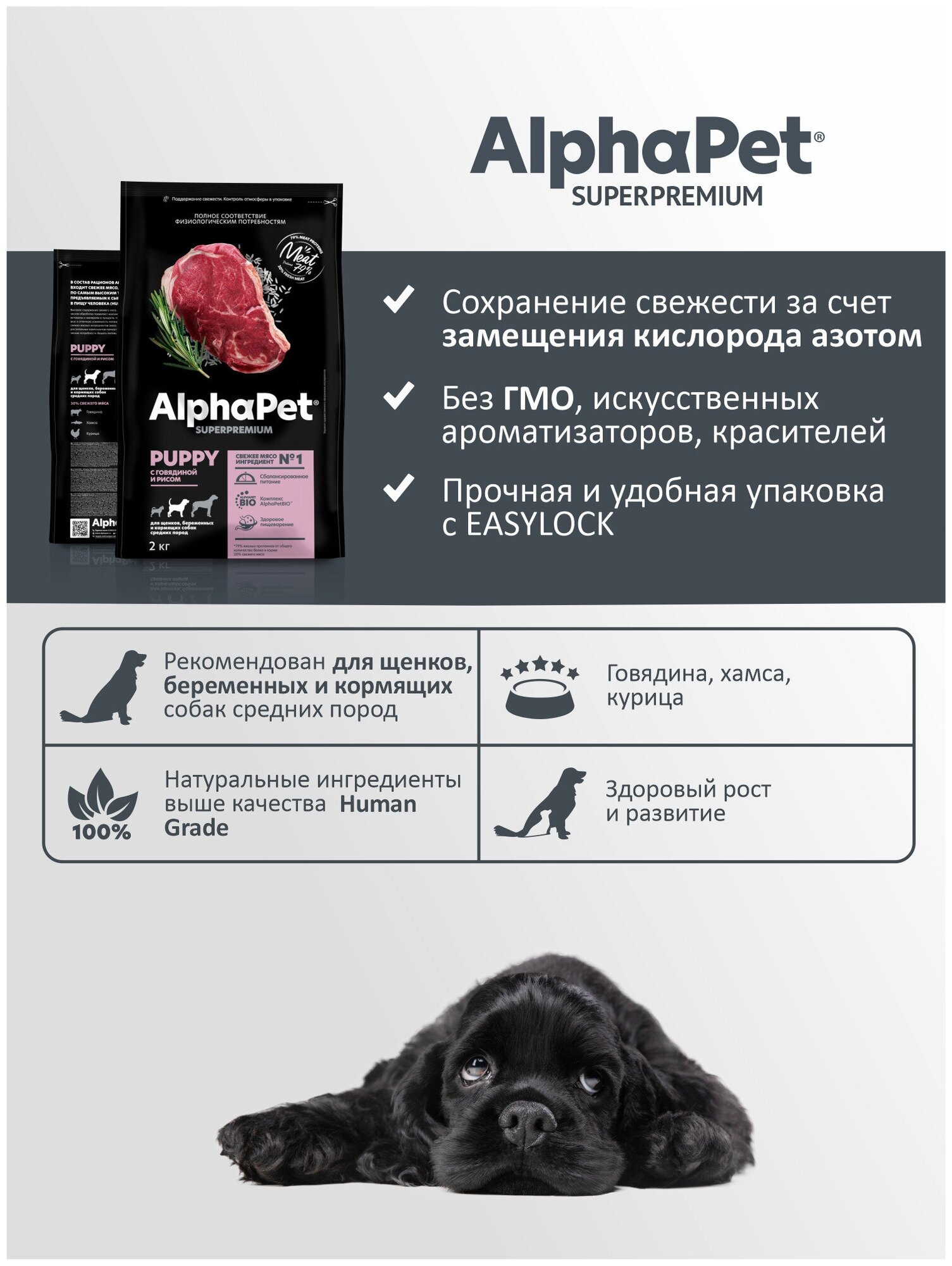 Сухой корм AlphaPet для щенков средних пород с говядиной и рисом 2 кг