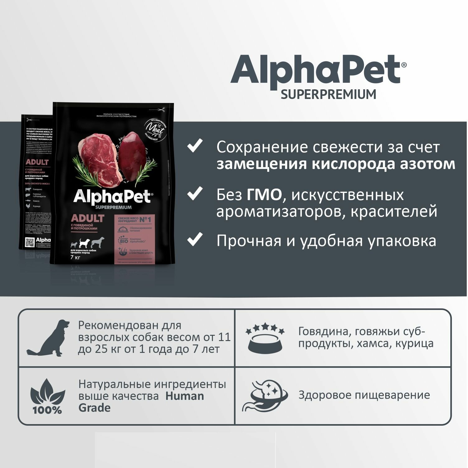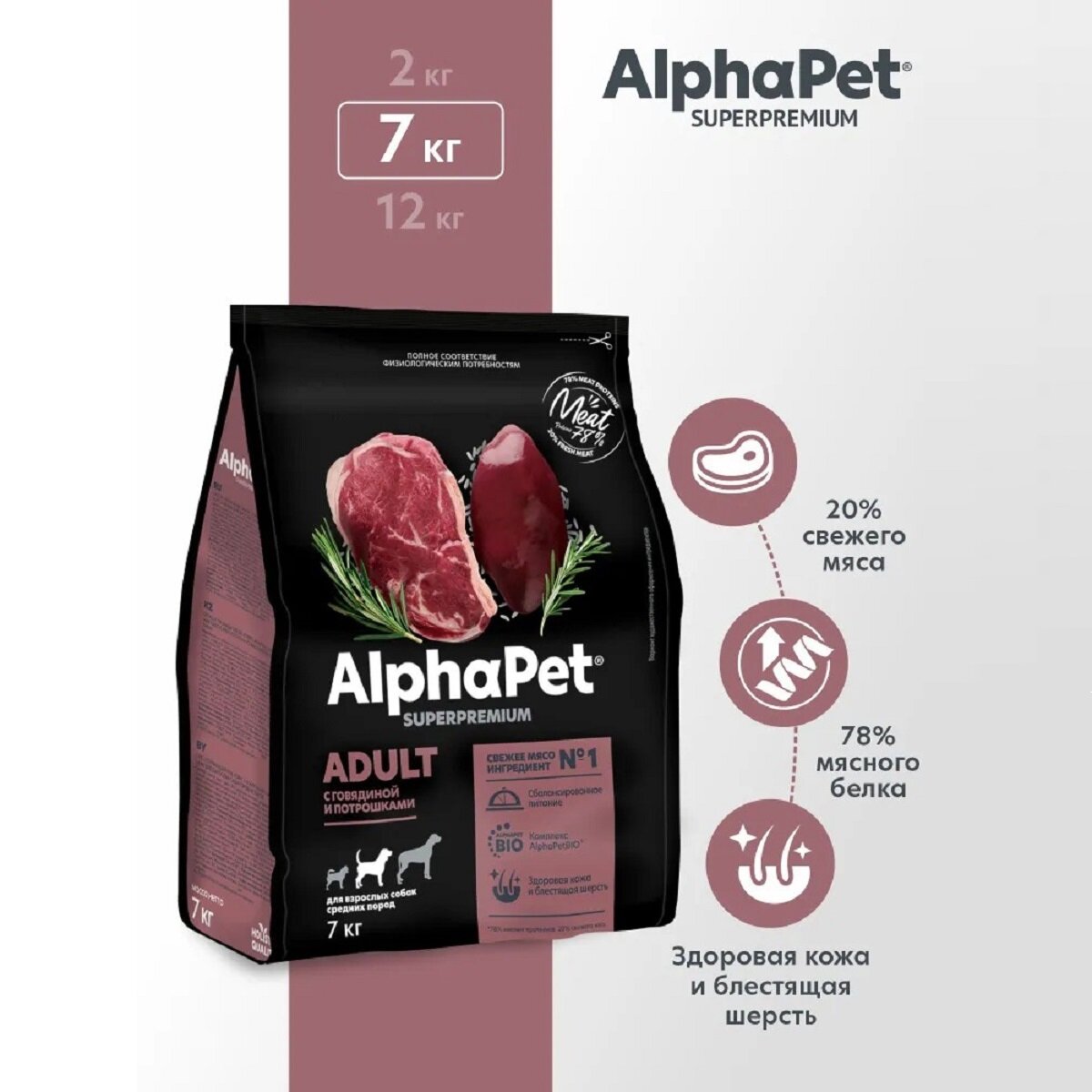 Купить ALPHAPET Superpremium сухой корм для взрослых собак средних пород (с говядиной и потрошками) 7 кг