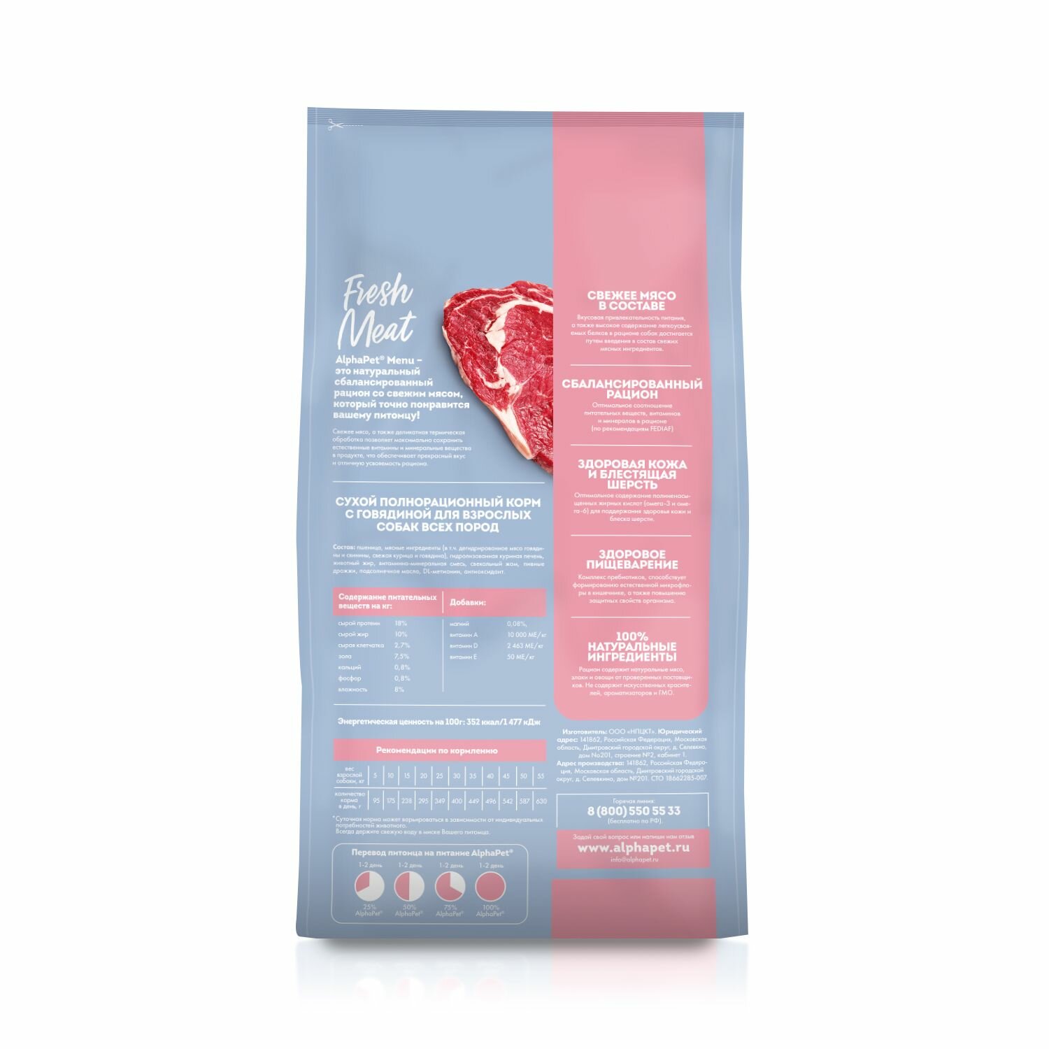 Альфа Пет 52758 MENU сух. двзрослых собак всех пород с Говядиной 15кг, 108350 (2 шт)