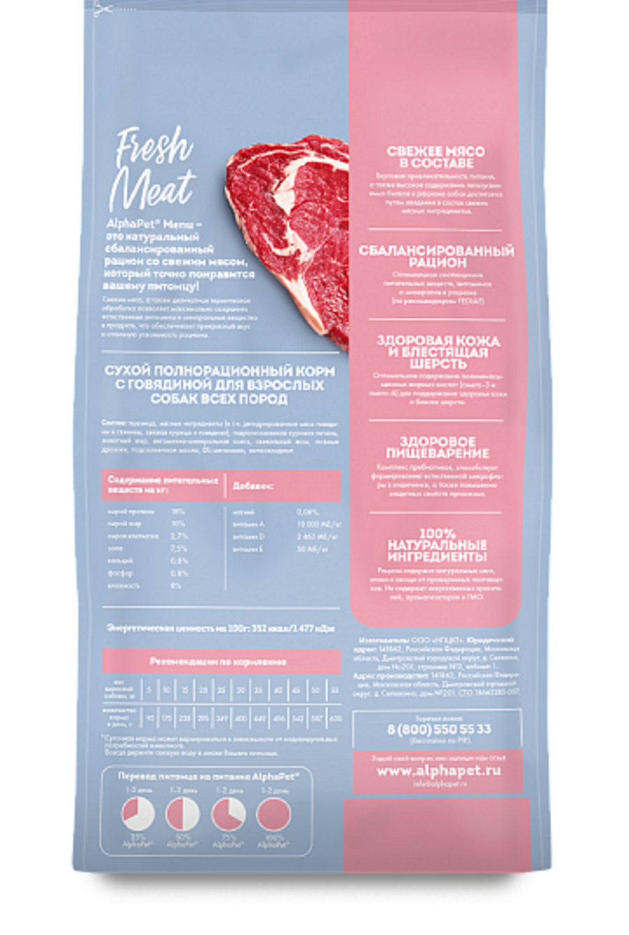 Купить Сухой полнорационный корм с говядиной для взрослых собак всех пород AlphaPet Menu 15кг