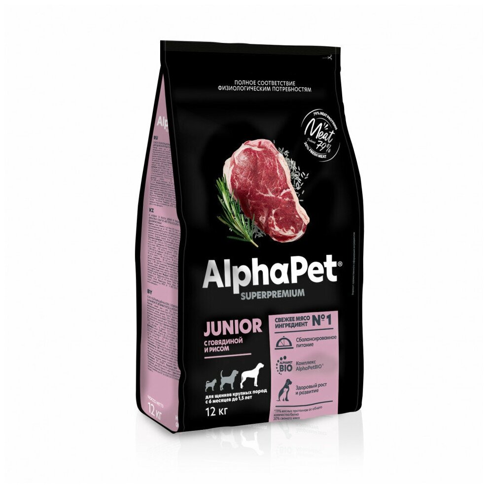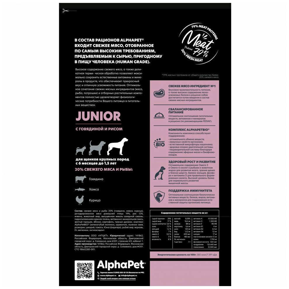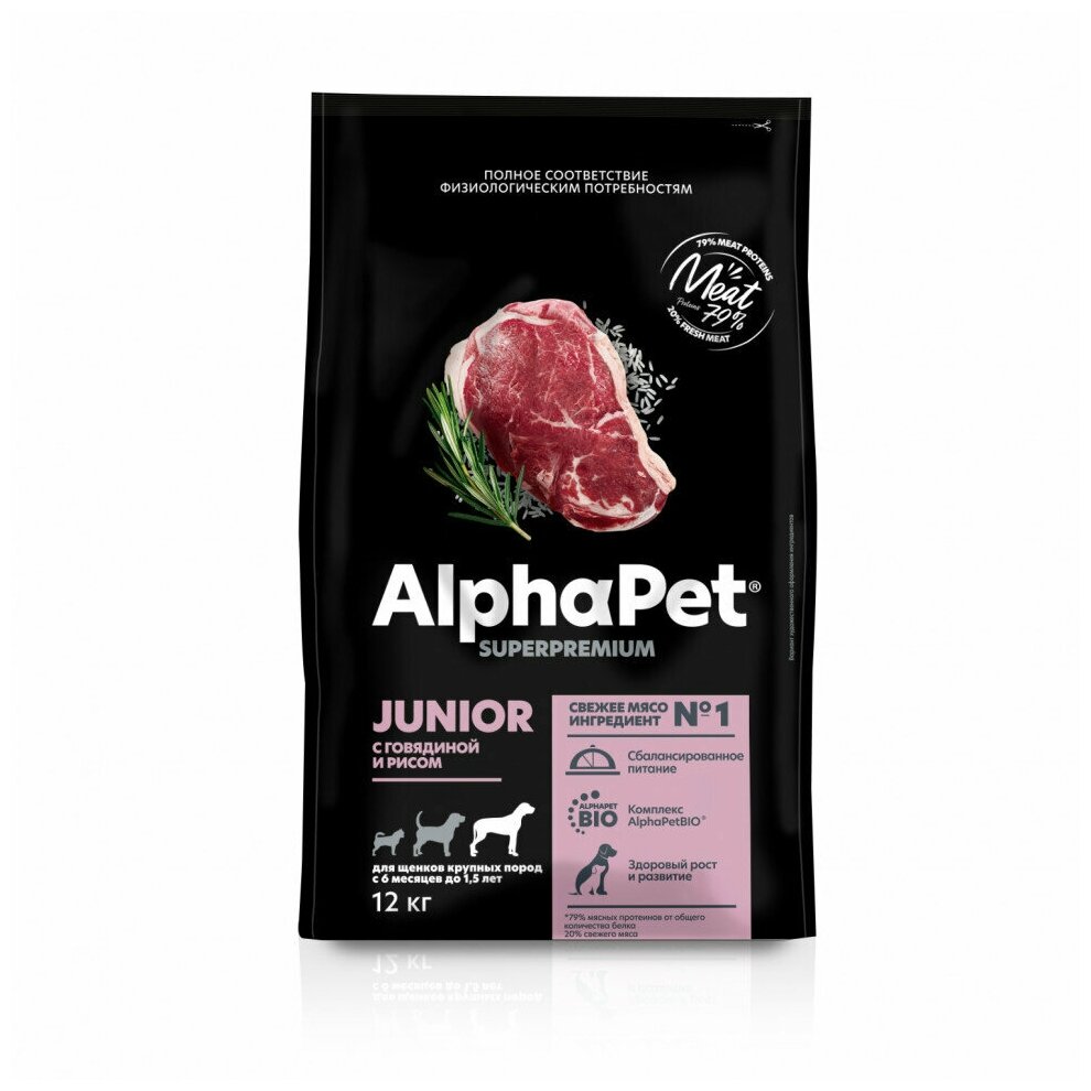 AlphaPet Superpremium сухой корм для щенков крупных пород с 6 месяцев до 1,5 лет с Говядиной и рисом 3кг