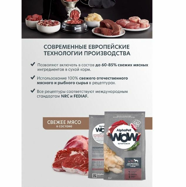 СохранитьСухой корм AlphaPet WOW Superpremium для взрослых собак крупных пород, с говядиной и сердцем, 7кг интересное: