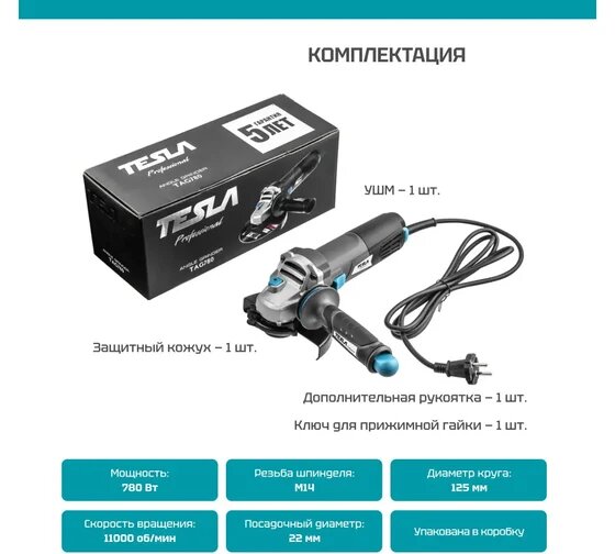 Шлифмашина угловая (УШМ, болгарка) TESLA TAG780 интересное: