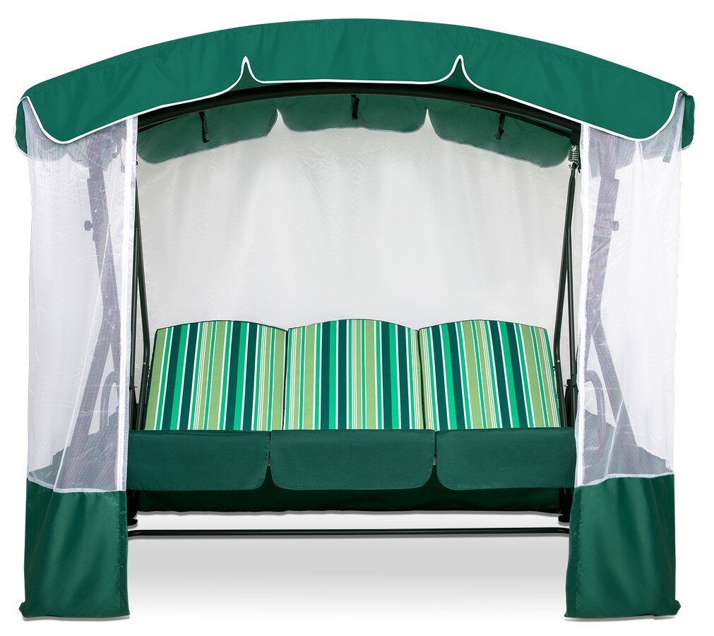 Садовые качели оазис премиум для дачи уличные 3-местные подвесные с тентом и москитной сеткой зеленый