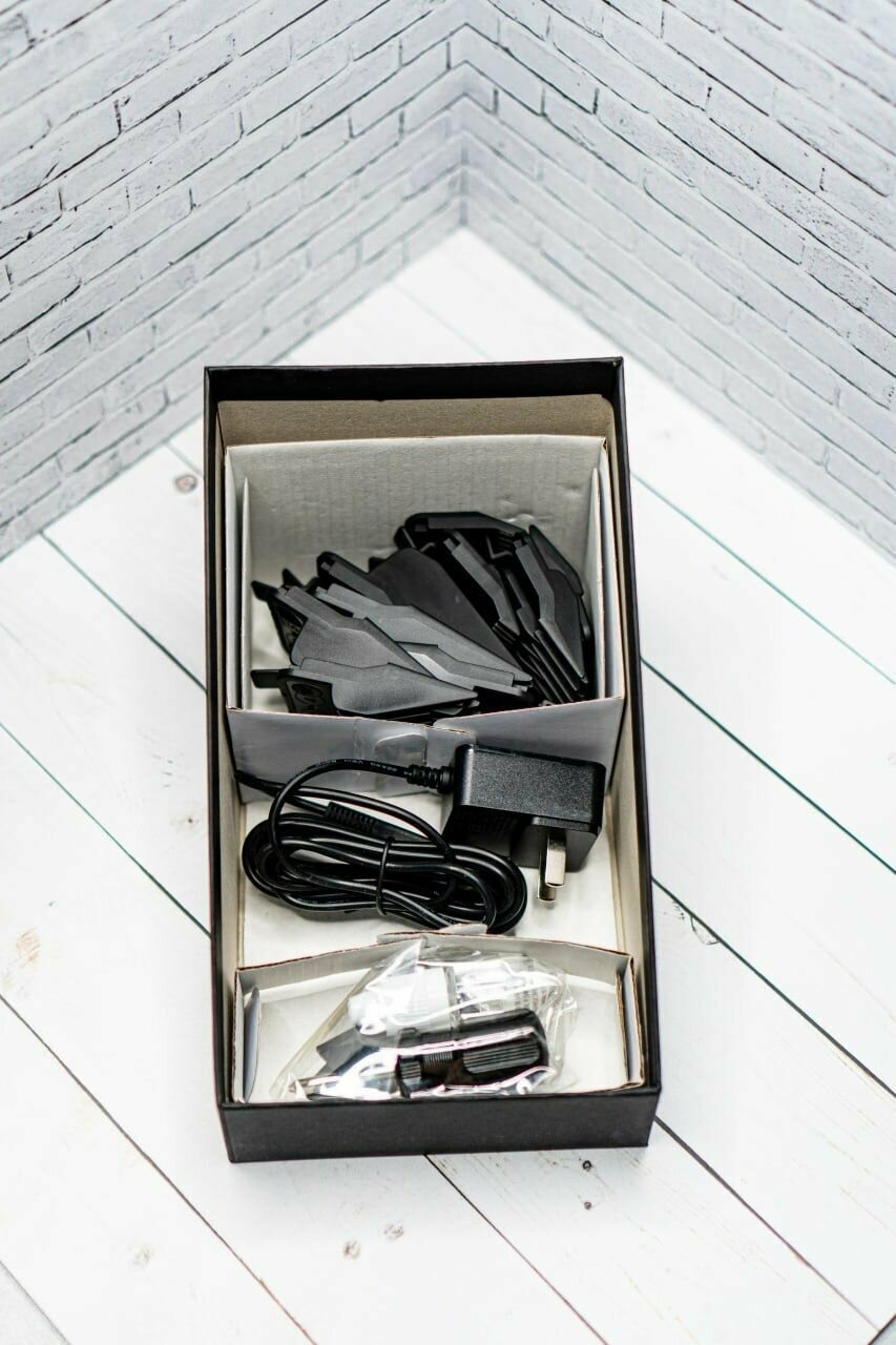 | Дополнительная информация | индикатор уровня масла, 2 режима скорости мотора, система восстановления аккумулятора, материал лезвия нержавеющая сталь/титан, уровень шума < 60 дБ, комплектация: машинка, набор насадок 10шт, адаптер, отвёртка, инструмент для регулировки лезвия и протектор, щётка для чистки ножа |