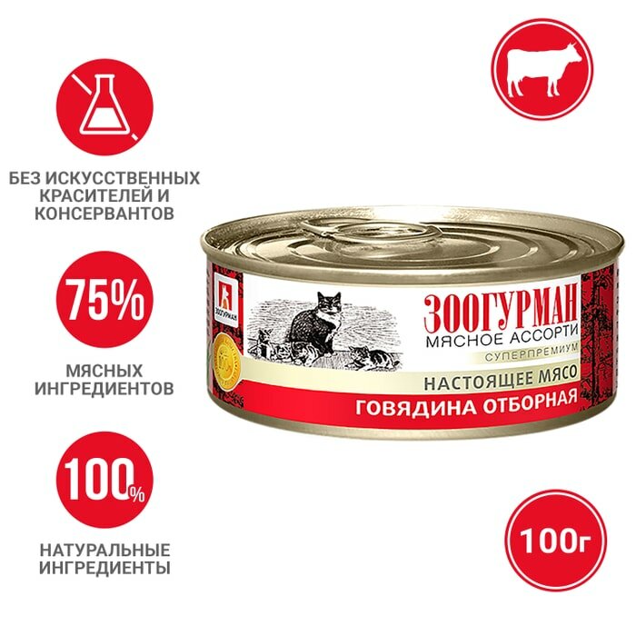 Зоогурман Консервы для кошек «Мясное ассорти» отборная говядина 0,1 кг 56503 (2 шт)