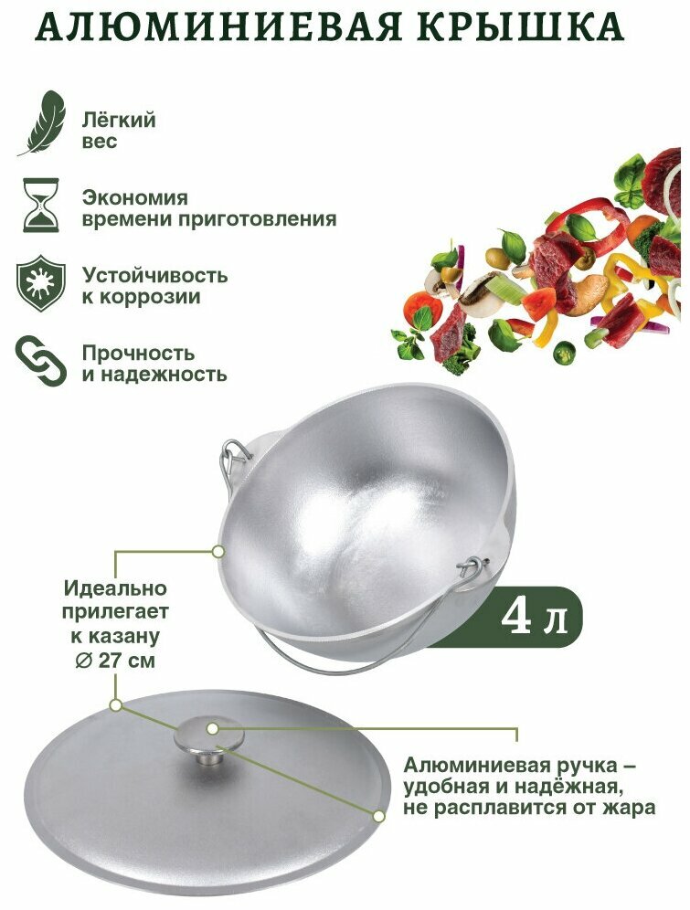 Казан алюминиевый с крышкой, 6,0л