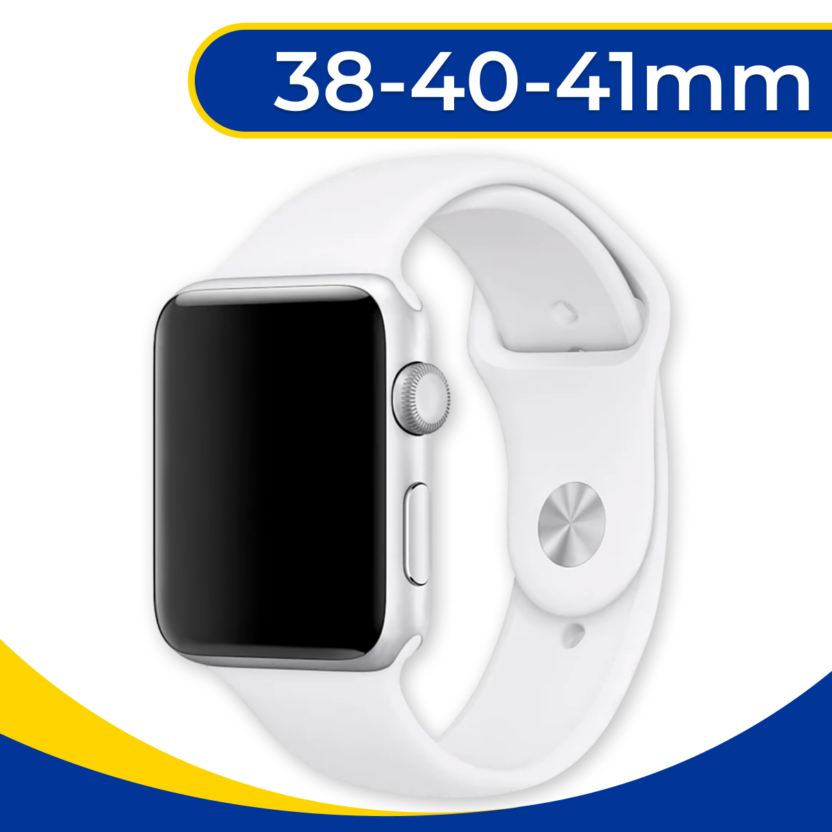 Купить Силиконовый ремешок на Apple Watch 1-9, SE 38, 40, 41 mm / Сменный браслет для часов Эпл Вотч 1-9, СЕ / Белый